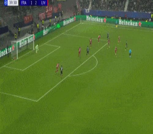 第26分钟,维尔茨突破被断,法兰克福随即快速反击,格策转移到右路,克里斯滕森小角度低射弹柱入网,法兰克福1-0利物浦。