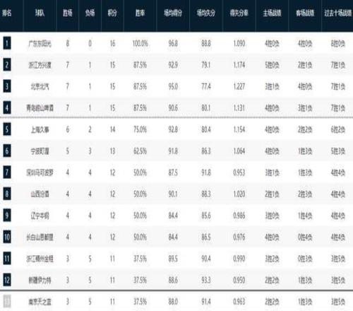 CBA排名又乱了!广东八连胜升榜首,北京赛季首败,广厦后来居上