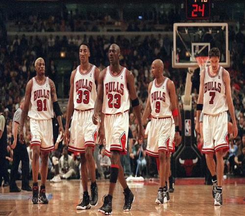 如果要给这几支王朝球队进行一个排名,那么公牛毫无疑问要在第一名的位置。在那个诸神混战的年代,乔丹和公牛的存在,真的是直接埋没一代的超巨球员。